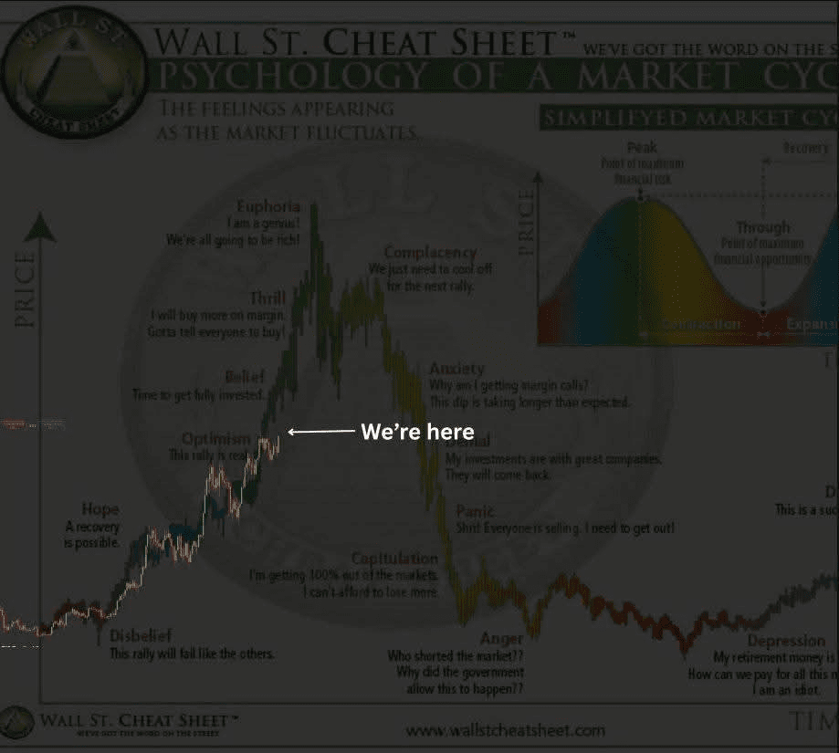Con l'inizio del Q4, Bitcoin si trova in una fase cruciale del ciclo di psicologia di mercato — la fase di ottimismo. Questa fase segna spesso la transizione dall'incredulità e dalla speranza a un potente rally che attrae sia investitori esperti che nuovi partecipanti. Secondo il framework del Wall Street Cheat Sheet, l'ottimismo è solo l'inizio di una tendenza rialzista più ampia, suggerendo che Bitcoin ha più spazio per crescere prima di raggiungere l'euforia.