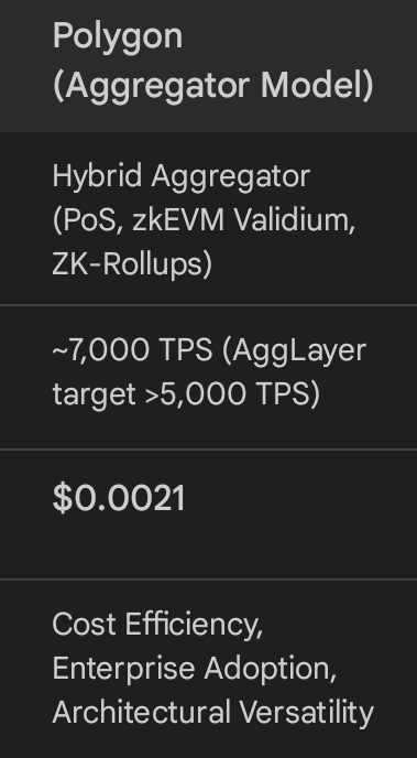 Efficienza dei Costi Senza Rivali: Il modello Validium consente l'esecuzione delle transazioni e l'archiviazione dei dati di avvenire off-chain, mentre le prove di validità vengono verificate sulla rete Ethereum L1. Poiché la pubblicazione dei dati è il componente di costo più grande per i Layer 2, questa ottimizzazione guida la struttura dei costi eccezionali di Polygon.