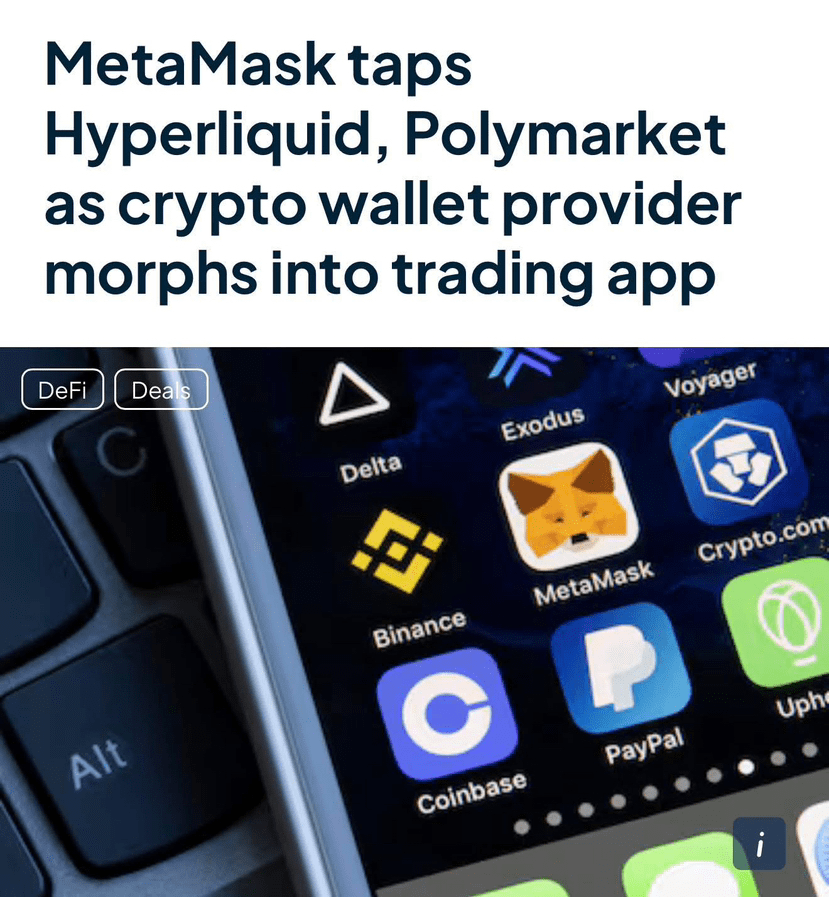 MetaMask apre l'interfaccia โtrading Perpetual Futuresโ insieme a Hyperliquid e si prepara a collegarsi a Polymarket