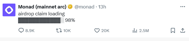 Monad ha selezionato utenti attivi tramite la distribuzione di token di test su larga scala e compiti di interazione.
