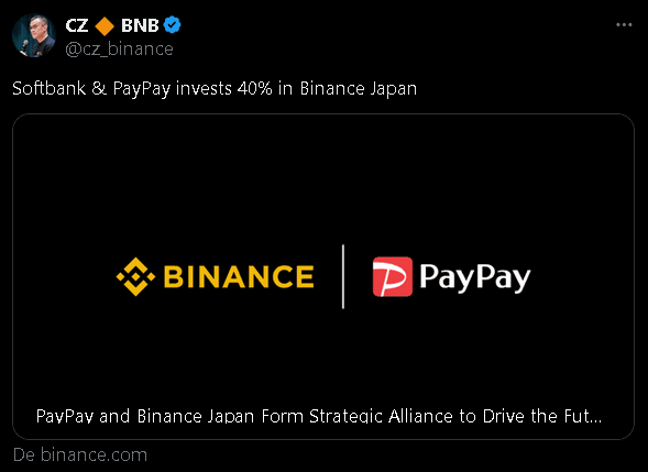 L'accordo, sostenuto da un investimento congiunto del 40% in Binance Japan, punta a più di una collaborazione tecnologica: si tratta di controllo e fiducia. Masayoshi Yanase, di PayPay, lo riassume così: “Vogliamo combinare la sicurezza di PayPay con l'innovazione di Binance”.