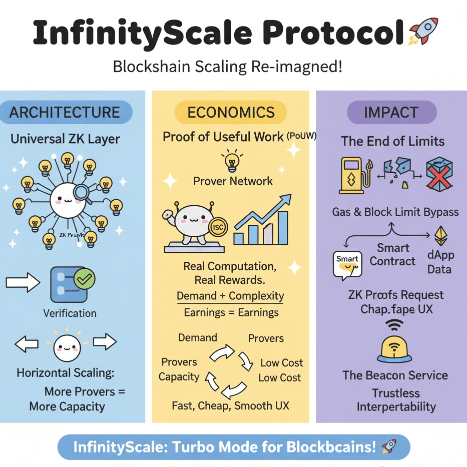 InfinityScale sta portando un nuovo paradigma che definisce la scalabilità della blockchain in un modo completamente nuovo. Le blockchain tradizionali rieseguono ogni transazione su ogni nodo, rendendo la rete lenta e costosa. InfinityScale ha spezzato questo collo di bottiglia — ora il calcolo pesante viene eseguito da una rete di provatori indipendenti che generano prove a conoscenza zero (ZK), e le catene verificano solo quelle prove.
