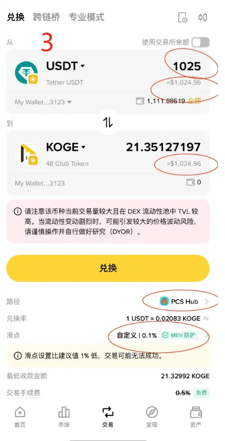 Entrare in DApp: Trova il token target nella sezione Alpha del portafoglio Web3 e fai clic su “Scambia”.