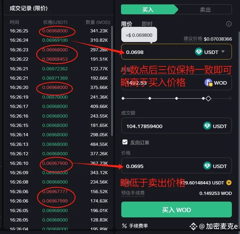 Tecnica dell'ordine limite: Imposta il prezzo di acquisto leggermente superiore al prezzo di mercato, imposta il prezzo di vendita inverso leggermente inferiore, puoi realizzare acquisti e vendite istantanei.