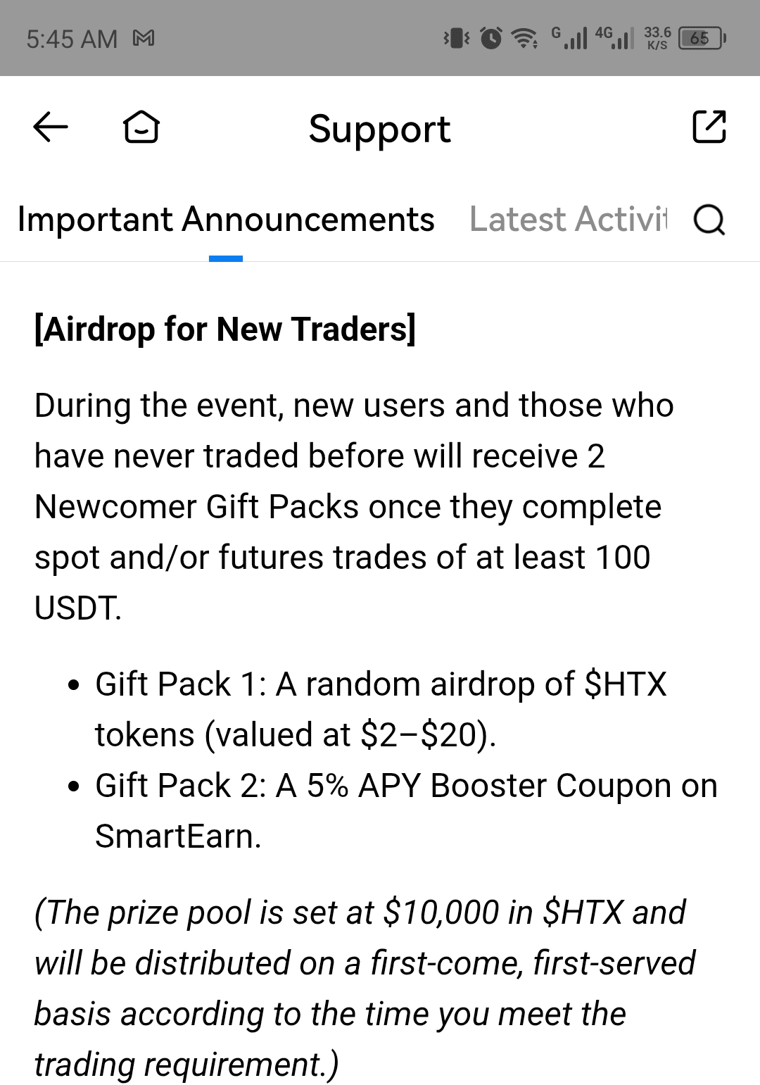 Usa il codice di referral e apri nel browser, cerca htx e registrati lì, poi scarica l'app, accedi e prova i compiti per guadagnare premi