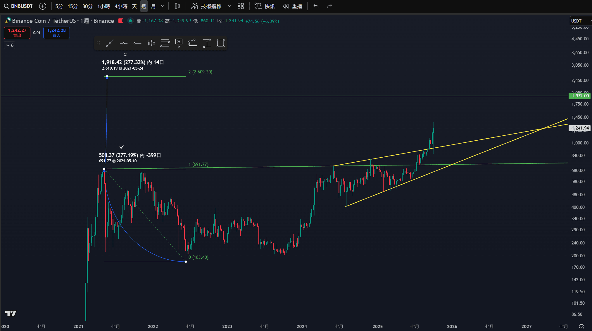 dalla condivisione della scorsa settimanail copione del mercato rialzista di BNB