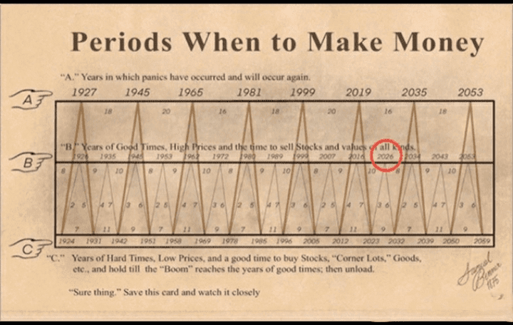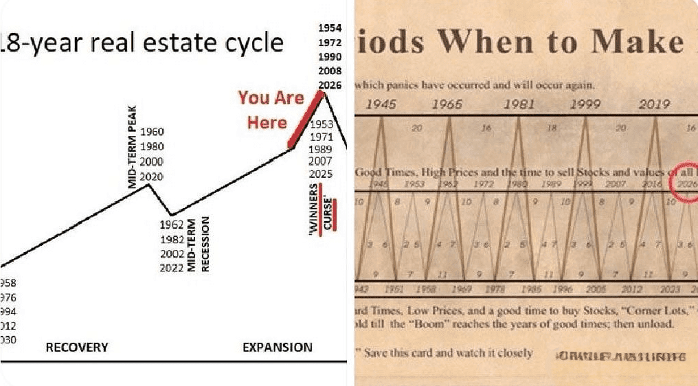 In parallelo, il Ciclo di Ricchezza dei Contadini di 200 anni—che traccia i cambiamenti nella produttività, nei flussi di capitale e nella ricchezza generazionale—proietta anche un picco ciclico intorno al 2026.