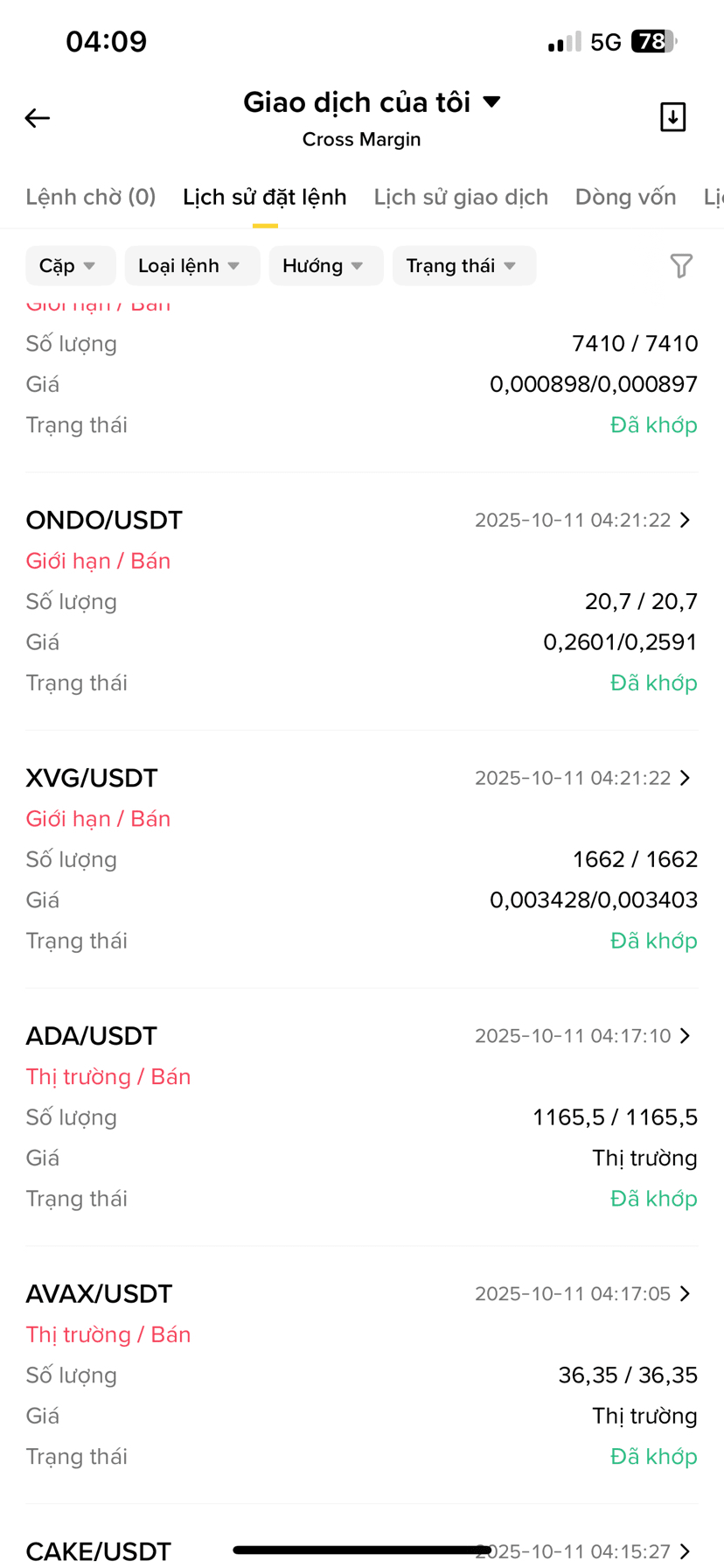 - Immagine 1: 1 ordine di liquidazione ATOM a un prezzo di 0.001652 alle 04:21:22, ovviamente quest'ordine non può essere eseguito.