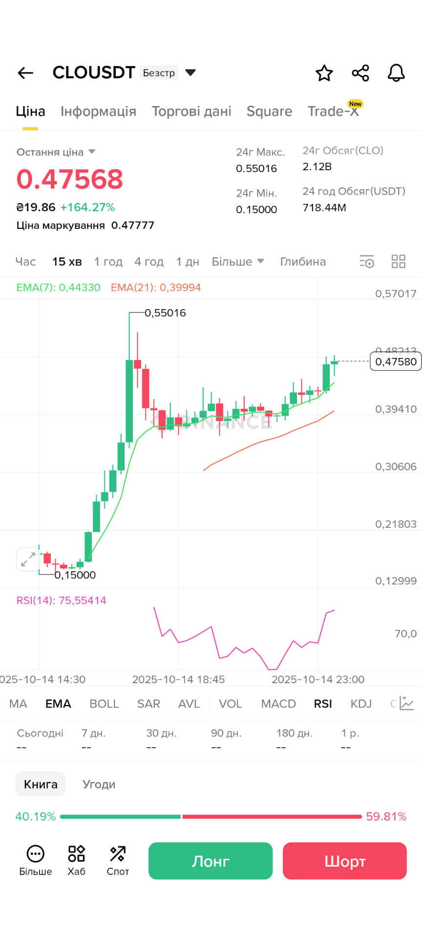 Leggendo i post, ciò che interessa principalmente ai nuovi trader e anche a quelli esperti è se sia possibile fare con 10$ il sogno 🍋 o addirittura 🍋 🍋 🍋. Introdurrò il corso delle cose man mano. Dopo aver letto varie strategie, ho sviluppato un cosiddetto variante della mia. Con il trading di futures. Mostro a voi i miei successi poiché la mia strategia si basava sui futures; investo 15 dollari nei futures poiché i rischi di liquidazione sono sempre elevati, ho deciso di garantirmi un margine aggiuntivo. Vagando per i grafici per trovare il trend giusto, mi sono fermato su $CLO e cominciò. All'inizio tutto andava secondo i piani seguendo strategie e indicatori da 15$ per poco più di 6 ore sono arrivato al traguardo di 59$ ma non era così nonostante gli indicatori dicano stop decido di guadagnare ancora quel dollaro mancante per arrivare a 60 e apro un'altra operazione che si è rivelata fatale per me poiché la mia fede nel ribaltamento e nel ritracciamento dopo un rapido crollo mi ha portato nel primo giorno alla liquidazione. Aggiungerò dettagli nelle immagini. A chi è interessato a come andrà avanti iscriviamoci!!