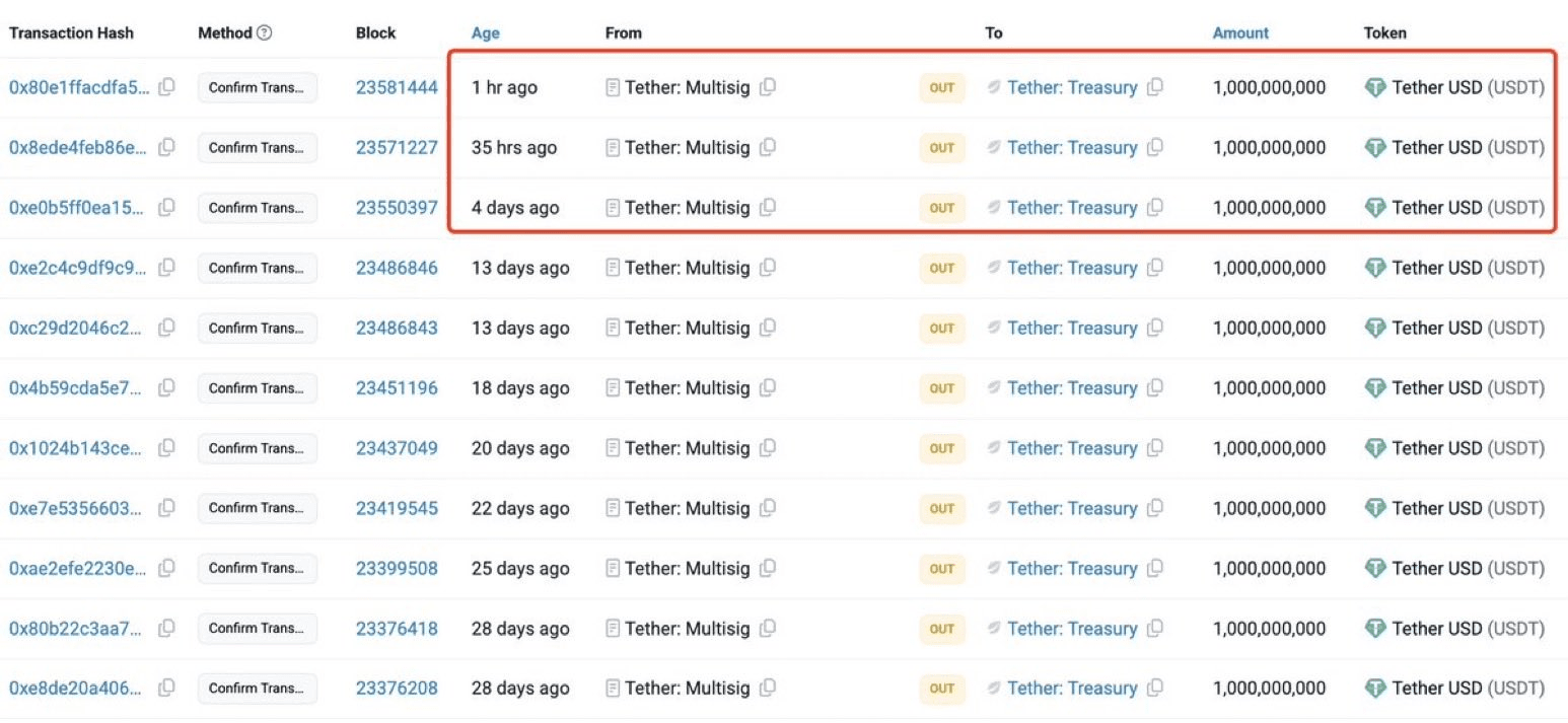 15 ottobre 2025 – Il weekend di sangue del mercato cripto sta già svanendo nella memoria, grazie a un'enorme iniezione di liquidità da parte delle potenze delle stablecoin Tether e Circle. Dalla shock annunciato dal Presidente Trump sui dazi del 100% sulle importazioni cinesi, che ha provocato una perdita di oltre $150 miliardi—Bitcoin sceso a $104K, Ethereum in caduta del 21%, e le altcoin come Solana e XRP che hanno perso il 30%—il duo ha coniato oltre $4,5 miliardi in nuovo USDT e USDC. La bomba di oggi: Tether ha appena autorizzato un ulteriore $1B USDT su Ethereum, portando il loro incasso di ottobre oltre $11B.
