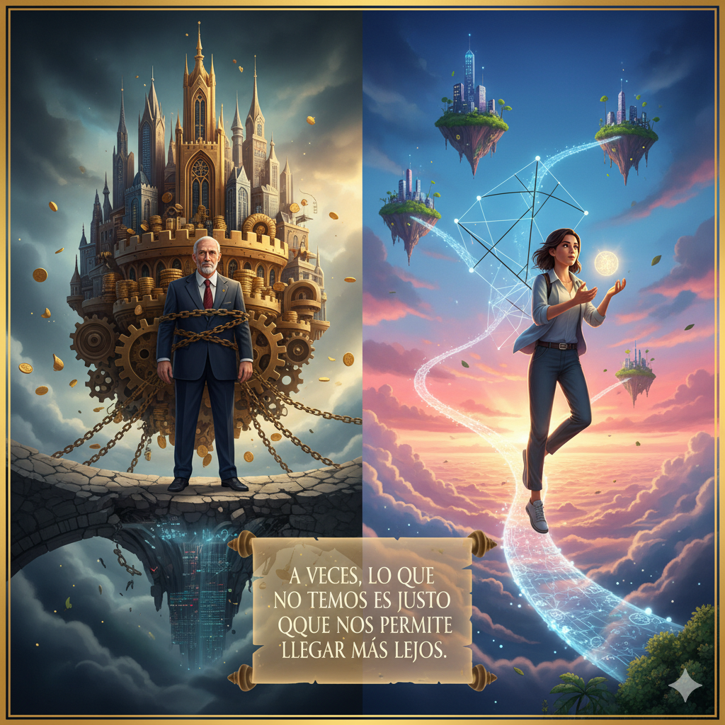 Il Signor Fortuna annuì, guardando fuori dalla finestra verso l'orizzonte, dove un nuovo alba cominciava a tingere il cielo di Capitalia. Comprendette che la vera ricchezza non risiedeva solo in ciò che si possedeva, ma nella leggerezza e nella flessibilità che permettevano l'innovazione e il progresso, anche nei momenti più difficili.