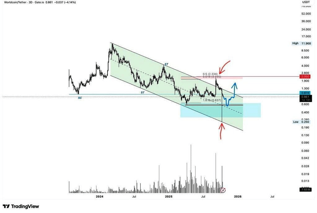 Dopo, è probabile che il prezzo subisca un aumento che attraversa il canale e punta a livelli più alti a lungo termine 🚀 $WLD