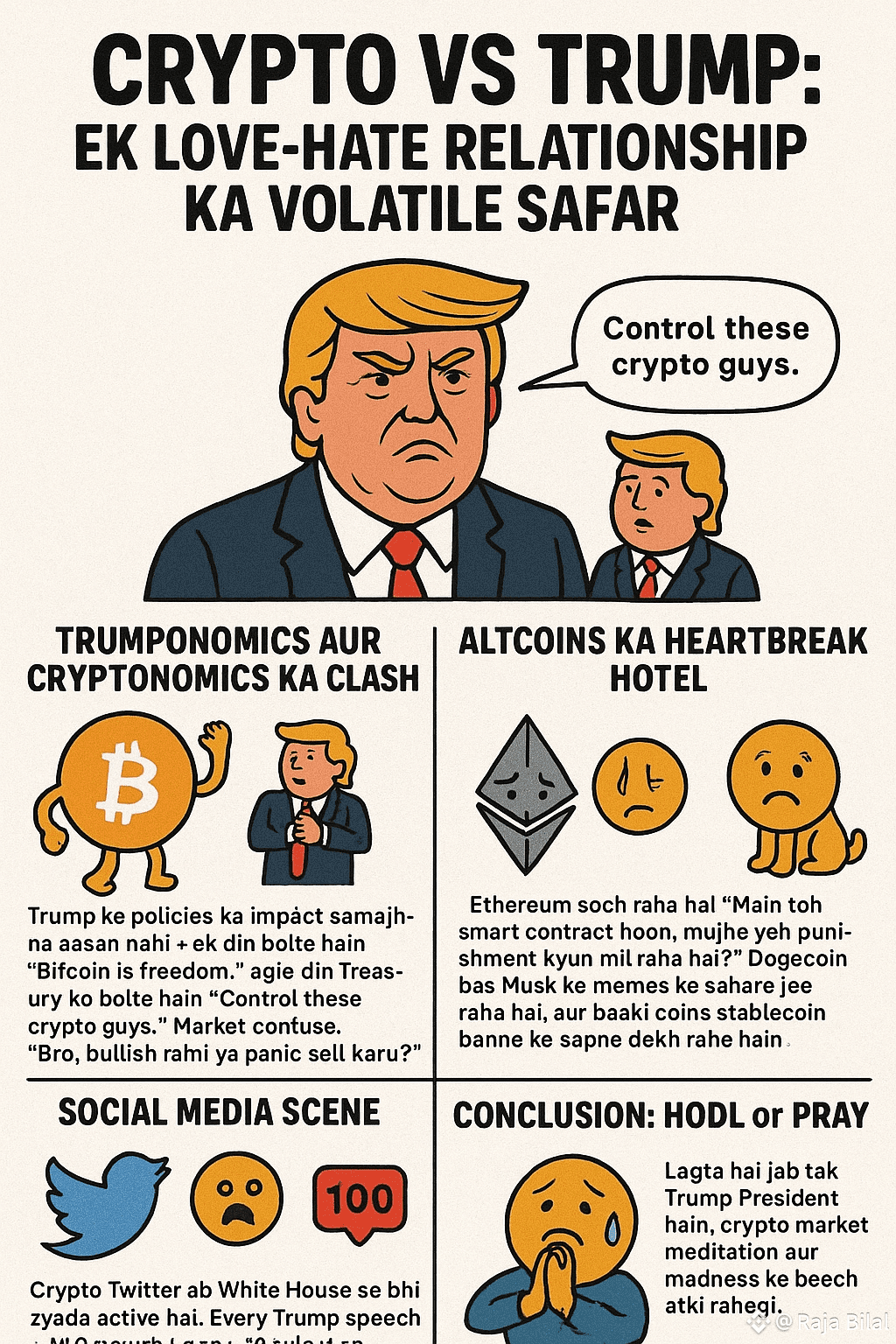 منذ أن عاد دونالد ترامب إلى البيت الأبيض، يبدو أن سوق العملات الرقمية يعيش جلسة علاج نفسي — أحياناً ارتفاع حاد، أحياناً انهيار مؤلم، وأحياناً مجرد نكتة على الإنترنت.