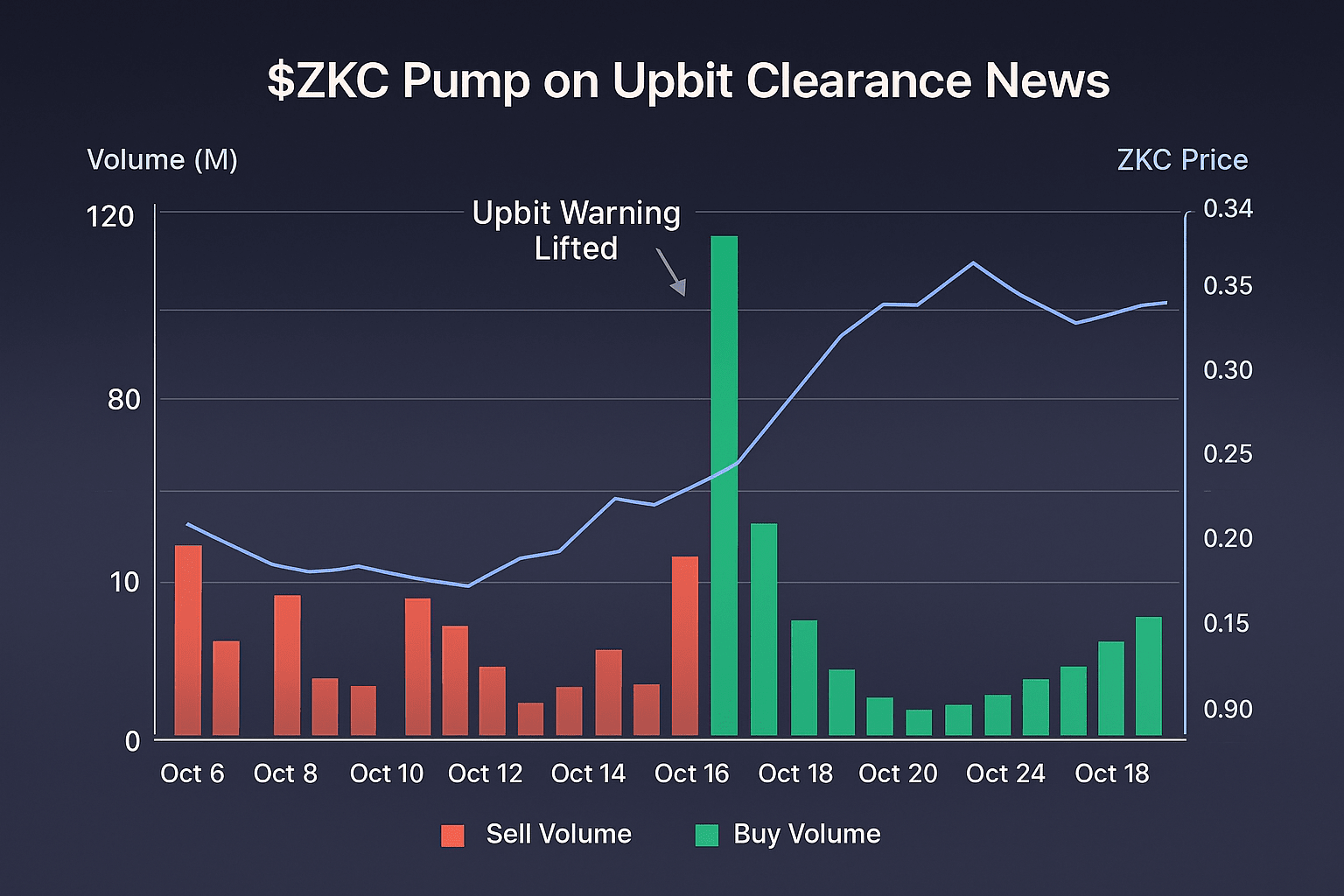 Il 17 ottobre, Upbit ha rimosso l'avviso su ZKC. Nello stesso giorno, ZKC è aumentato fino al 66% e il volume degli scambi è aumentato del 1.300%.