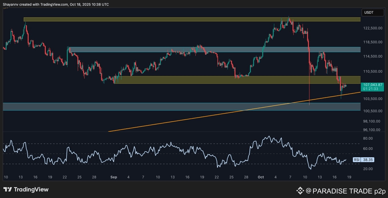 No entanto, o RSI permanece abaixo de 40, refletindo uma clara perda de impulso de alta e, a menos que o preço se recupere rapidamente, essa linha de tendência pode quebrar, abrindo caminho para níveis abaixo da zona-chave de US$ 100 mil, o que pode levar a uma mudança geral de baixa na tendência do mercado.
