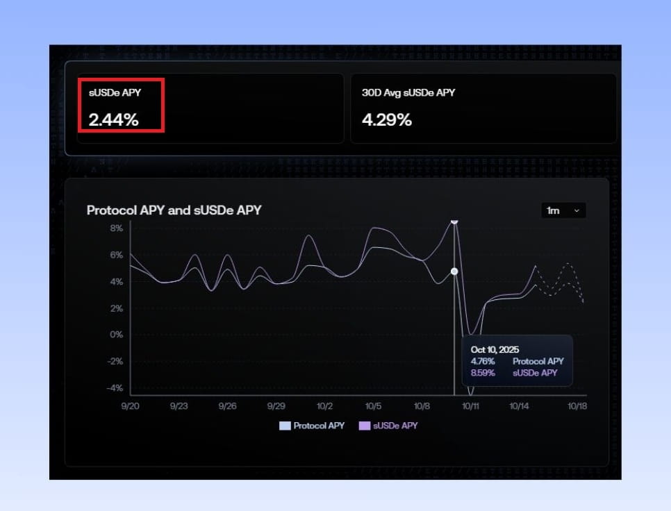 1. L'APY di sUSDe è sceso dalla media di 30 giorni del 4,29% al 2,44%.