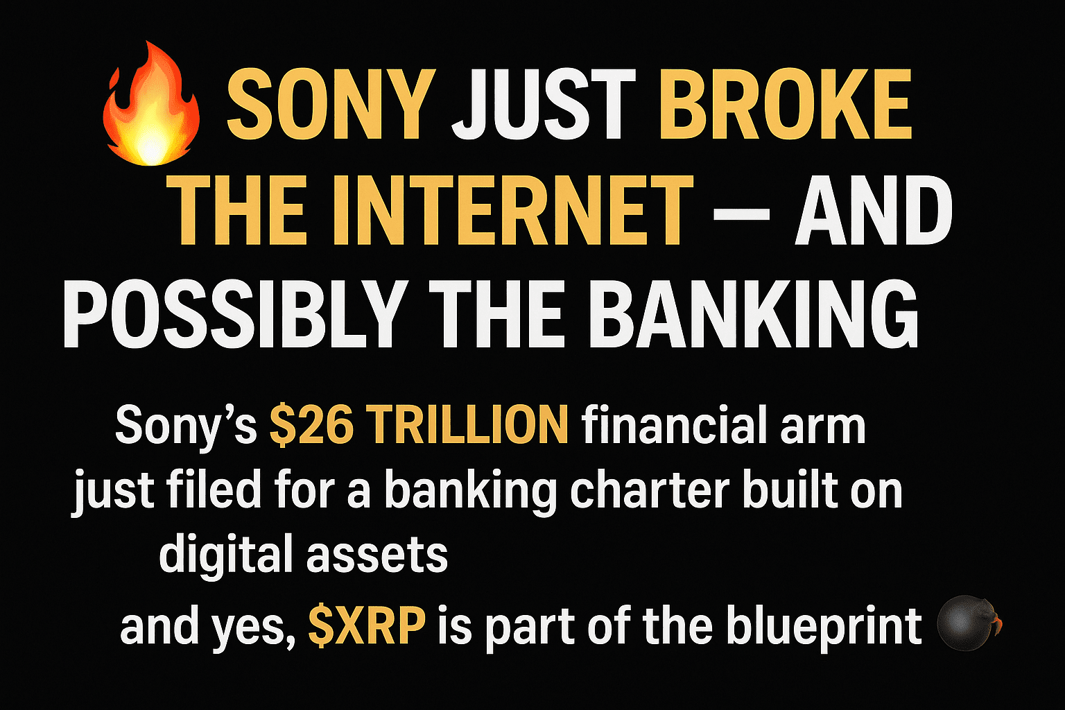 🚨 Il braccio finanziario di Sony da 26 TRILIONI di dollari ha appena presentato una richiesta per una charter bancaria basata su asset digitali — e sì, $XRP fa parte del progetto. 💣