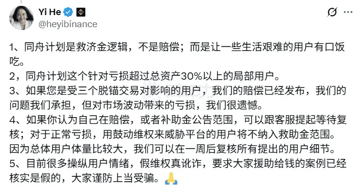 Ultimamente, tutti stanno urlando riguardo al “Piano della Stessa Barca” di Binance, chiedendo risarcimenti. Ma ecco la verità — il co-fondatore di Binance He Yi lo ha chiarito: