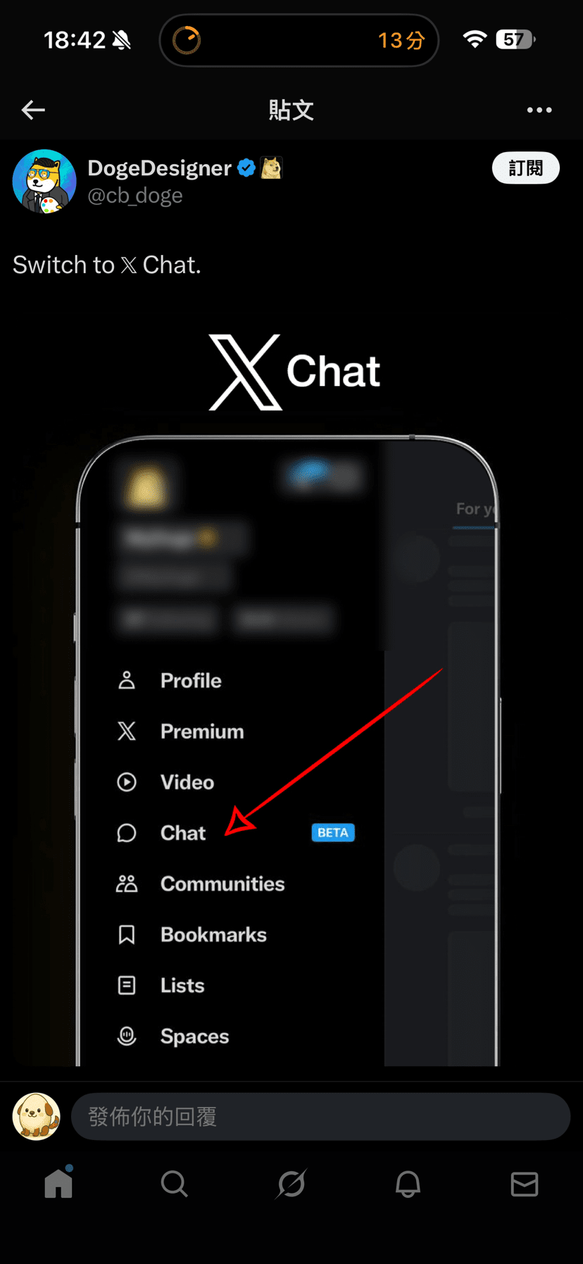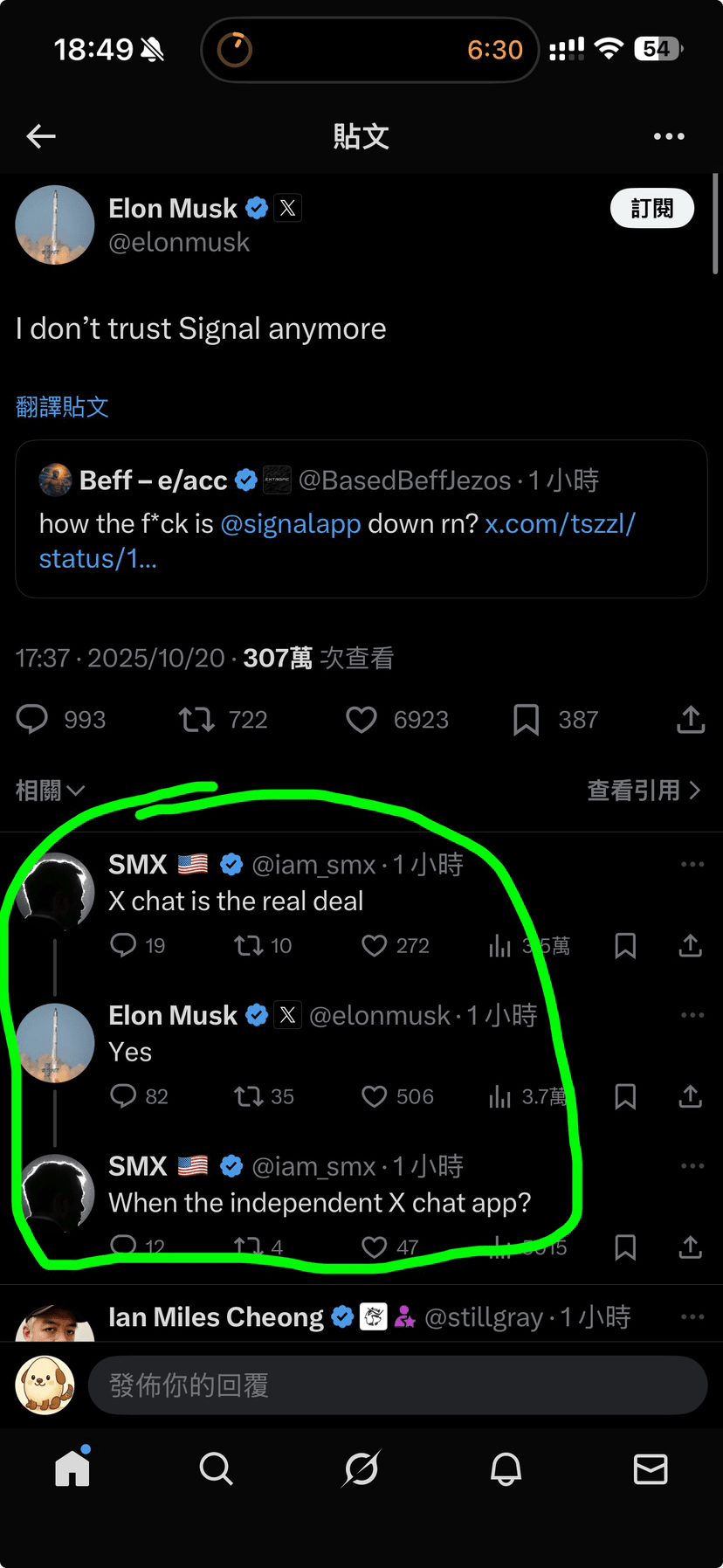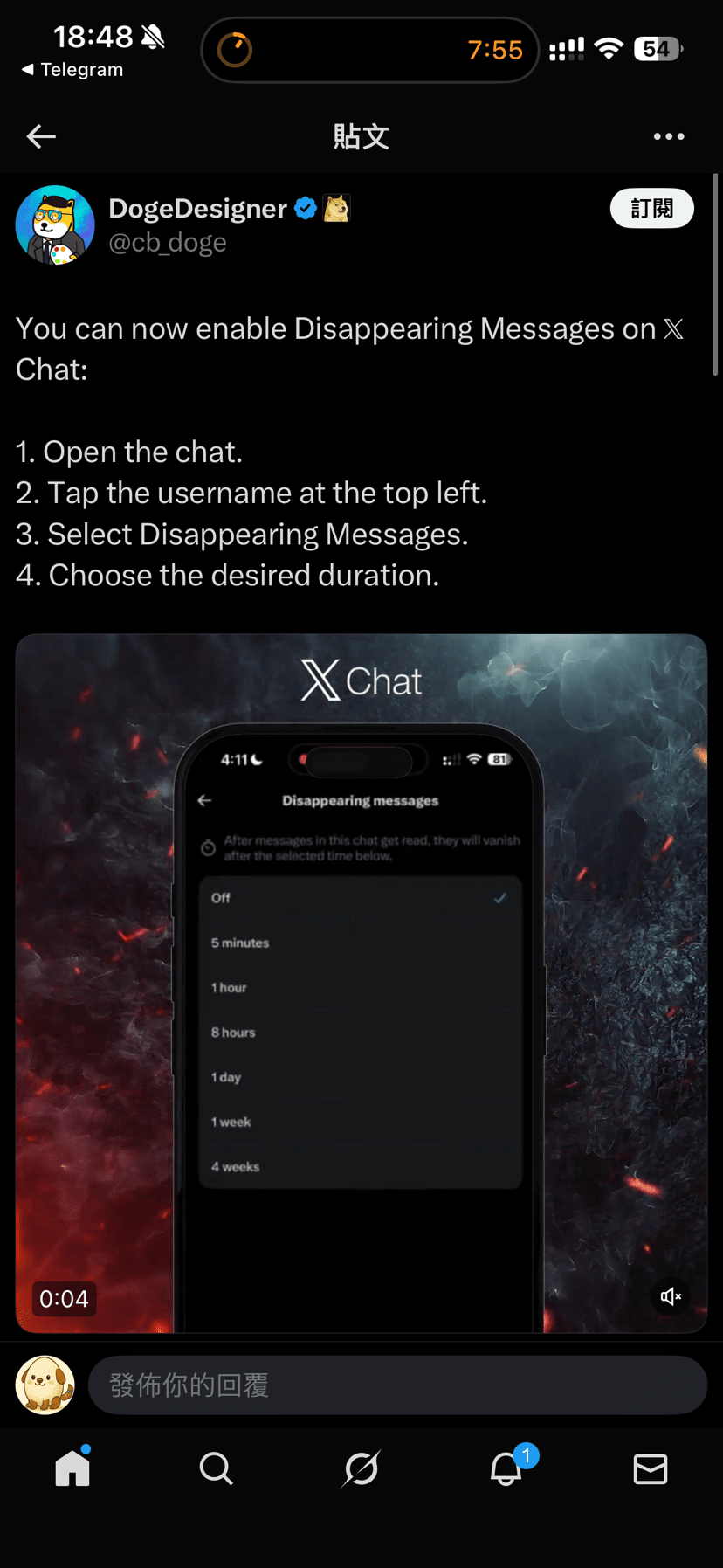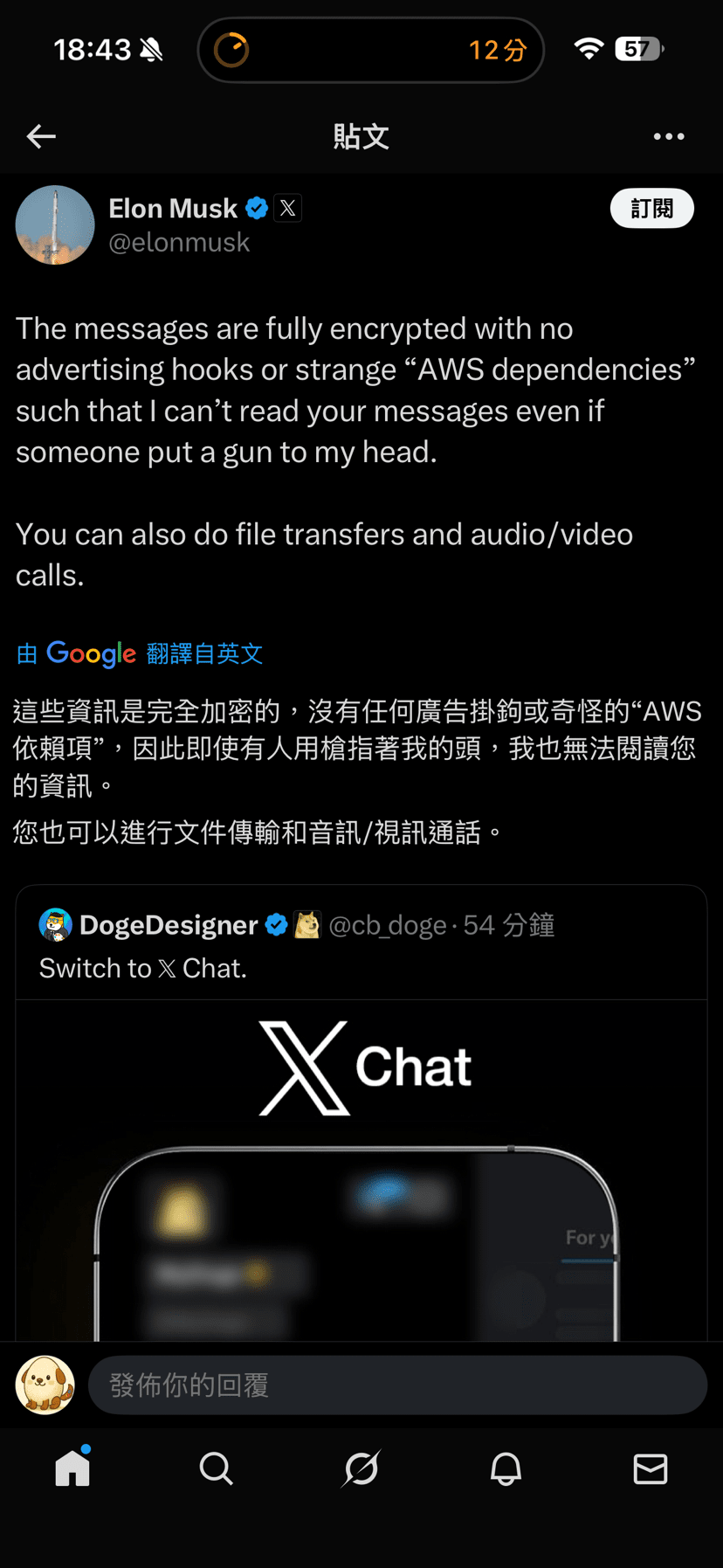 La chat crittografata pubblicizzata recentemente da Musk come mostrato nell'immagine