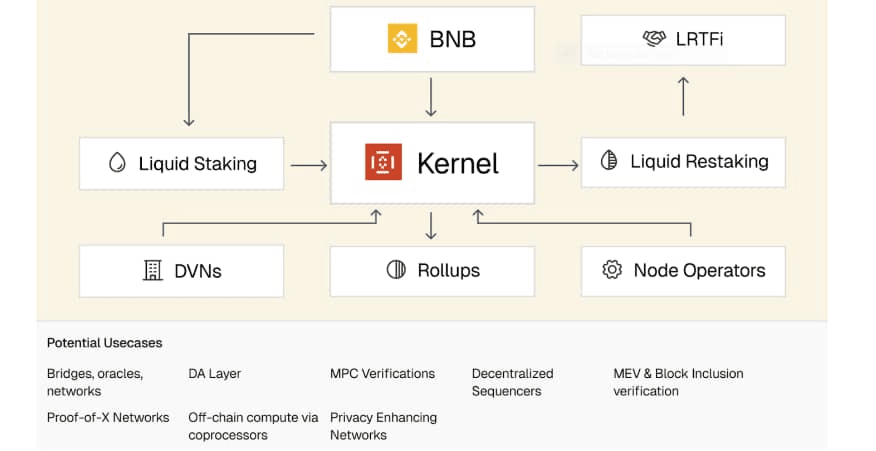 Alla sua base si trova Kernel, il hub di restaking BNB. Qui, gli utenti possono ripristinare BNB per rafforzare la sicurezza dei validatori mentre guadagnano rendimenti costanti. Non si tratta solo di staking — si tratta di partecipare a una rete più sicura e più efficiente.
