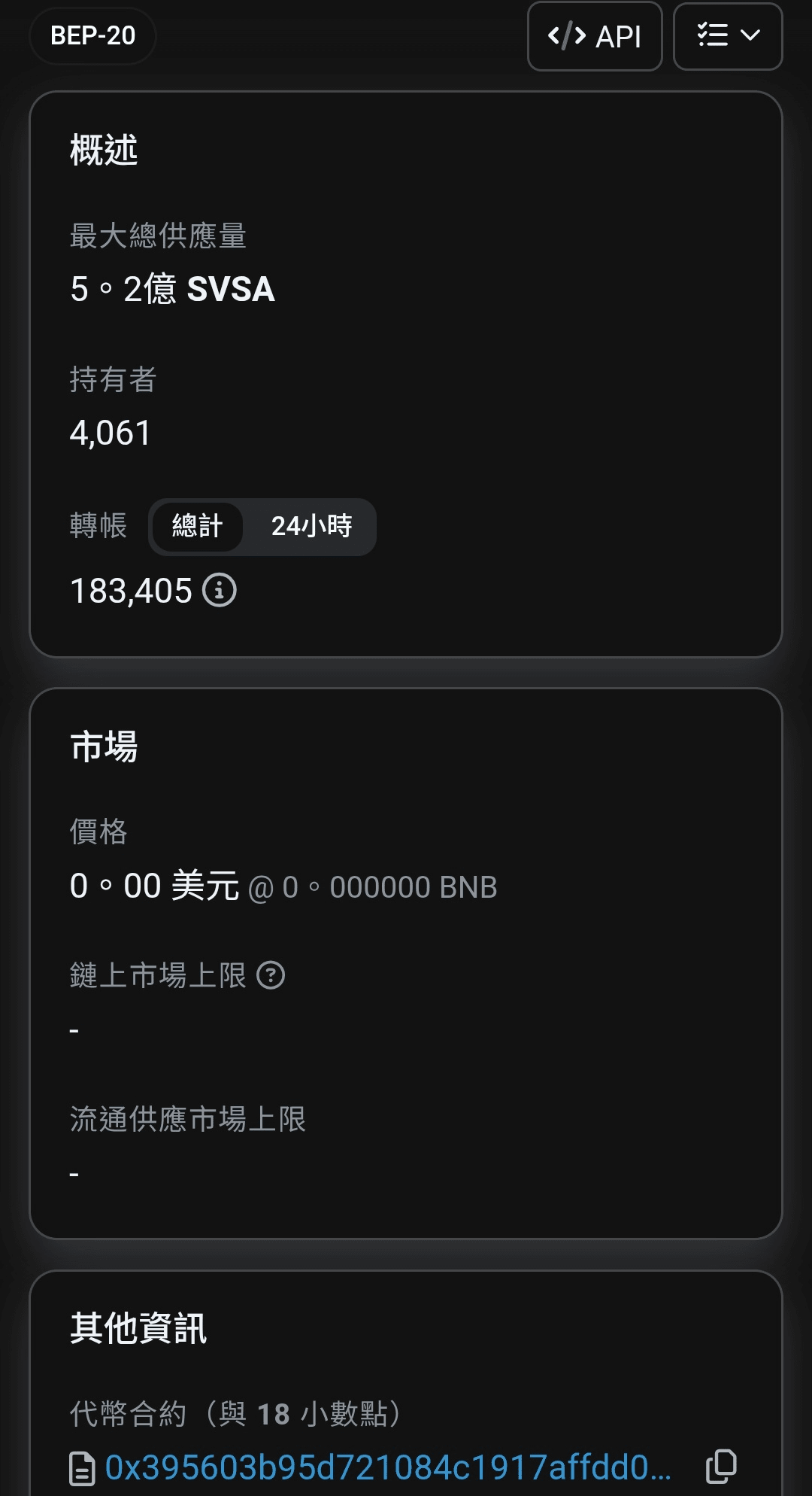 (Il nome completo on-chain è BEP-20: token SVSA)