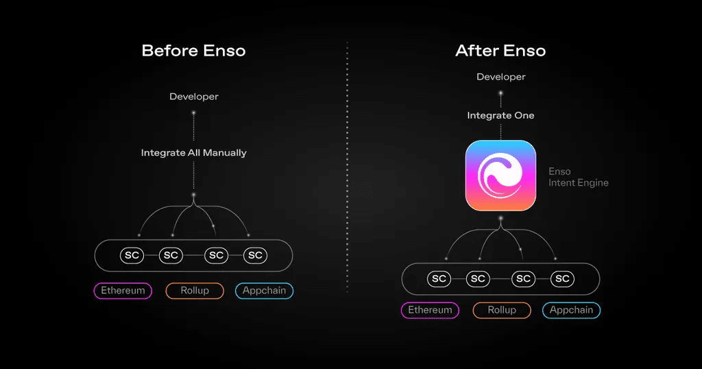 In parole semplici: invece di dover integrare ogni singola blockchain, Enso aiuta a connettere tutto in uno. Se Ethereum è “il computer dei contratti intelligenti”, Enso è “il coordinatore multi-chain” che aiuta a costruire applicazioni Web3 più velocemente, con meno errori e a costi inferiori. 💡