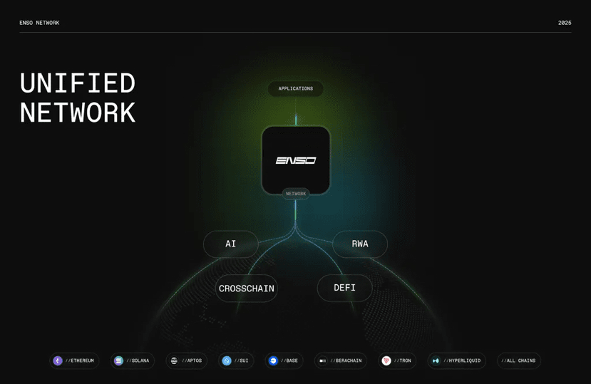 Enso è una rete infrastrutturale per Web3 (omnichain / strato di connessione multi-chain), che consente agli sviluppatori di “leggere e scrivere” su qualsiasi blockchain, rollup o contratto intelligente tramite un'unica interfaccia.