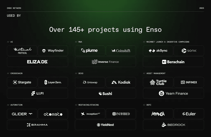 🚀 Oltre 145+ protocolli hanno utilizzato l'infrastruttura Enso – dimostrando una velocità di sviluppo estremamente rapida.