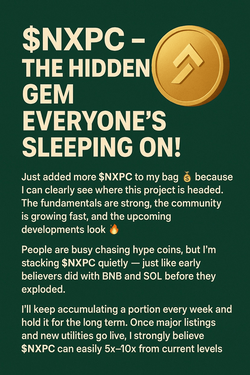 I fondamentali sono solidi, la comunità cresce velocemente e i prossimi sviluppi sembrano promettenti. Le persone sono impegnate a inseguire monete di tendenza, ma io sto accumulando NXPC in silenzio — proprio come i primi sostenitori hanno fatto con BNB e SOL prima che esplodessero.