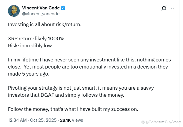Secondo Van Code, mentre investire riguarda tutto il rischio e i rendimenti, XRP ha il potenziale di portare fino al 1.000% di profitto per gli investitori.$XRP #MarketRebound #CPIWatch #BitcoinETFNetInflows #FedPaymentsInnovation #BinanceHODLerTURTLE