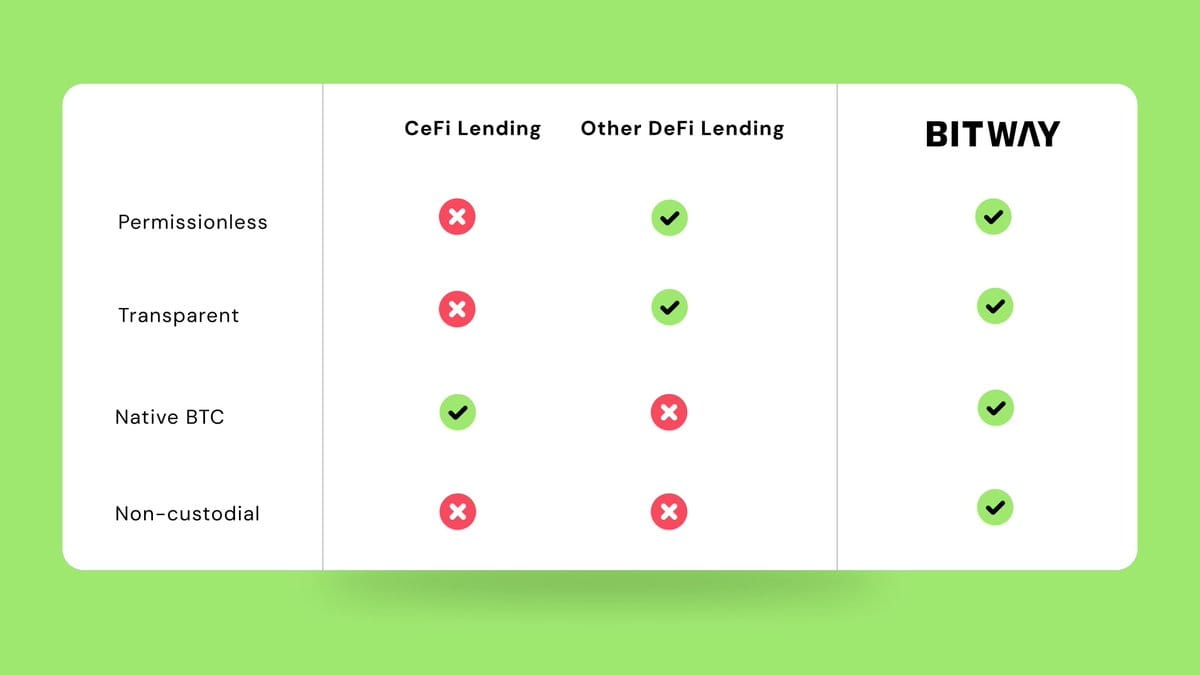 Prestiti di Bitway: i prestiti garantiti da BTC diventeranno il caso d'uso più caldo nel campo del DeFi di Bitcoin. Le soluzioni attuali sono o troppo dipendenti da permessi e fiducia, o non riescono a servire i detentori di BTC nativi. Bitway ha lanciato il primo protocollo di prestito nativo BTC non custodito, con un'esperienza utente di prima classe.