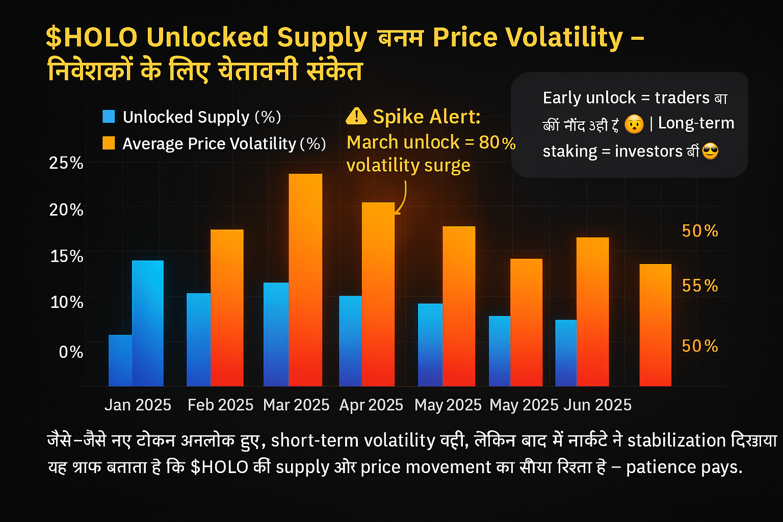 È importante notare che man mano che nuovi token vengono sbloccati, potrebbe esserci una pressione sui prezzi a breve termine. Gli investitori tendono spesso a prendere profitti durante questi eventi di sblocco, aumentando così la volatilità. Un grafico utile potrebbe essere: “HOLO Circulating Supply vs Upcoming Unlock Schedule”, che indicherà in quali periodi potrebbe esserci maggiore volatilità.