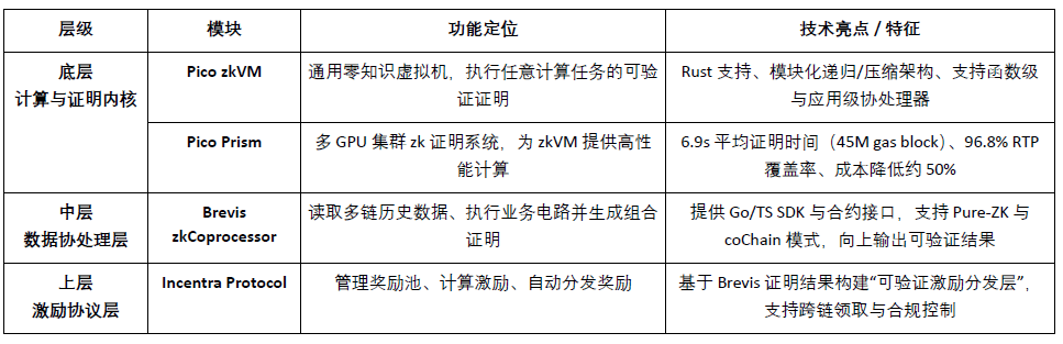 Brevis costruisce un livello di calcolo affidabile multi-chain con "zkVM generico (Pico/Prism)" e "Coprocessore di dati (zkCoprocessor)": il primo risolve qualsiasi problema di calcolo verificabile, il secondo attua l'implementazione commerciale di dati storici e cross-chain.