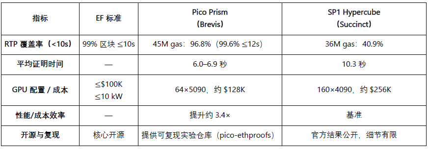 Nel mese di ottobre 2025, Brevis ha pubblicato il rapporto (Pico Prism — 99.6% Real-Time Proving for 45M Gas Ethereum Blocks on Consumer Hardware), annunciando che il suo Pico Prism è diventato il primo zkVM a superare completamente lo standard di prova dei blocchi in tempo reale (RTP) della Ethereum Foundation (EF).