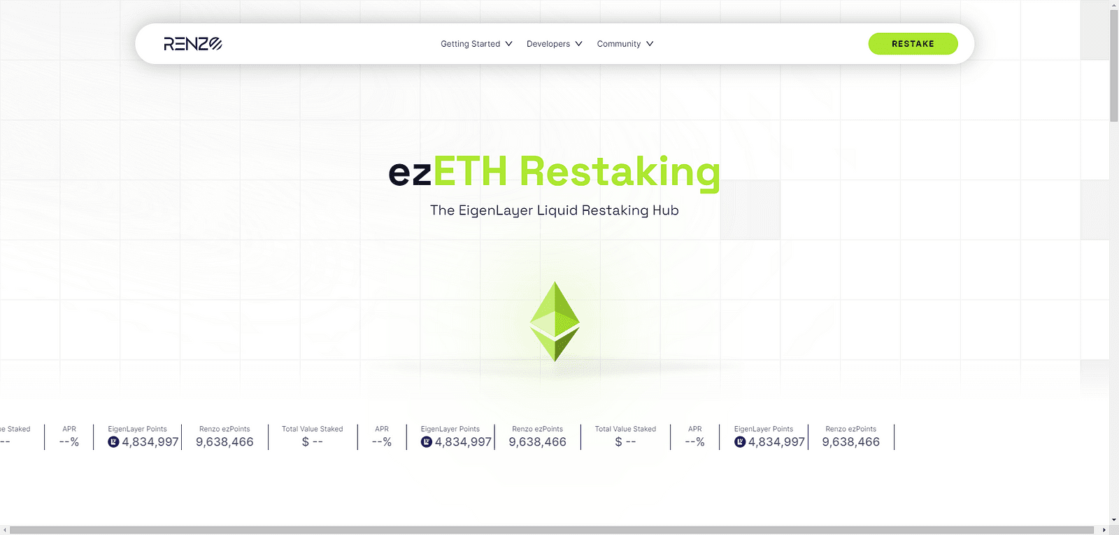 Renzo è anche un prodotto di tipo Liquid Native Restaking e non sarà limitato dal limite di deposito EigenLayer LST. I depositi sono ancora possibili. Va tuttavia notato che gli ETH depositati presso Renzo al momento non sono rimborsabili e il certificato ipotecario ezETH non può essere trasferito e verrà bloccato a breve termine.