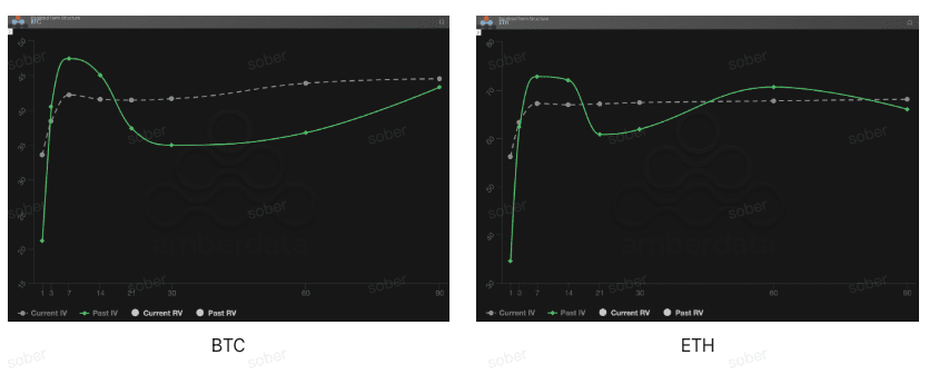 Ritiro a breve termine della IV: sia per BTC che per ETH, l'attuale IV Corrente (volatilità implicita attuale) curva nella parte anteriore (DTE 7-30 giorni) è diminuita rispetto all'IV Passato (volatilità implicita storica) nel periodo storico. Questo conferma la riparazione dello Skew, suggerendo che l'impatto immediato del rischio macroeconomico a breve termine sembra essere stato parzialmente digerito e il premio per il rischio di eventi a breve termine sta diminuendo.