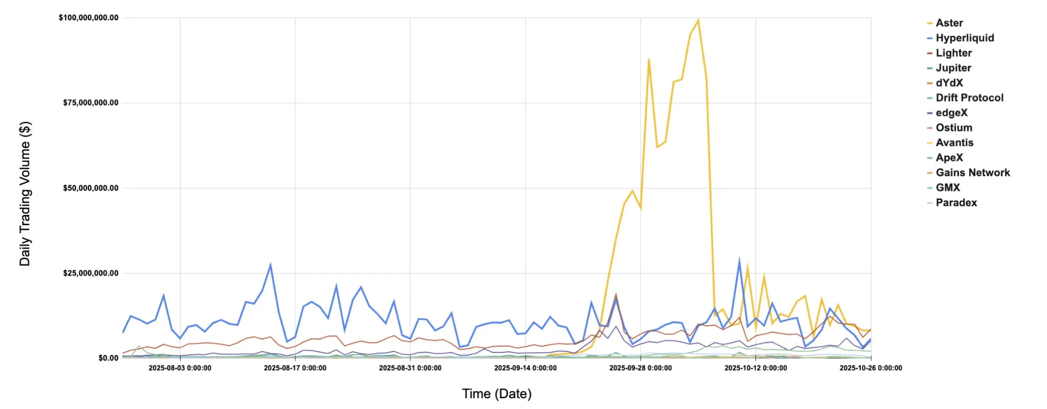 图片 3:Aster 链上永续合约显著领先 Hyperliquid,推动 BNB Chain 实现突破