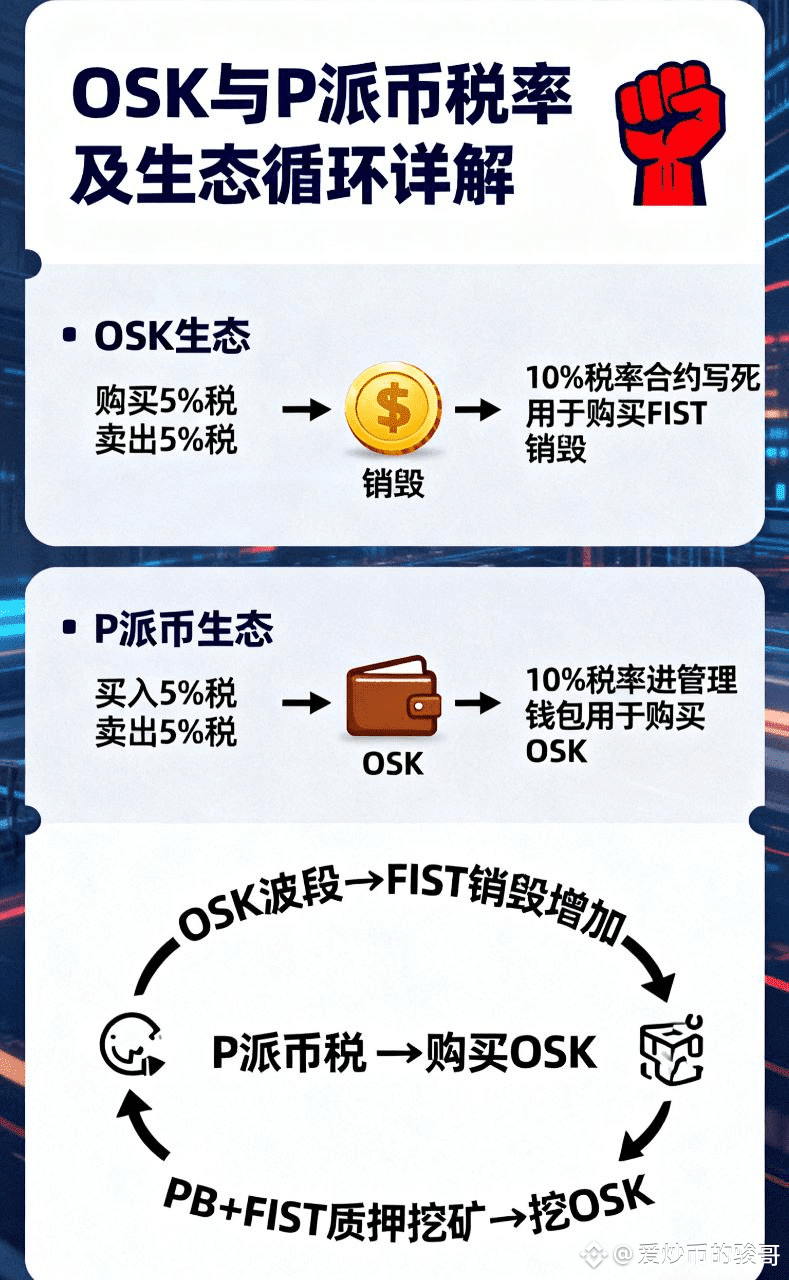 OSK合约地址0xb4df3e2212df722996a158b38a6340957fc13111 是FIST第一个生态,已经放弃权限。完全去中心化,用FIST做底池,买卖税各5%用于销毁FIST,让FIST无限通缩,FIST涨价OSK也会涨价,FIST发行10亿枚,上线19天已经通过交易税回购销毁一亿枚,3个月过后,保守估计销毁3-4亿枚,持续通缩下去,FIST价格会持续上涨,价值无限。OSK币,总发行1000枚,打入黑洞248.31枚,只剩下751.69枚,十分稀缺。不要因为它几千美金一个就觉得高,一点都不高,甚至可以说是地板价,因为它只有751个,假设它发行量是7亿枚,换算下来也才0.0037美金,目前13034个持币地址,平均每个地址持币量只有0.0057个,有这三个币的环环相扣,持续共识下去,OSK价格到100万美金都不足为奇,毕竟量就那么多。