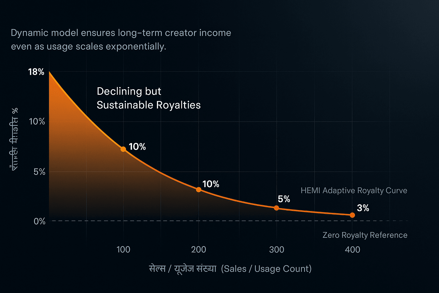 Il nuovo modello di royalty programmabile di HEMI connette artisti e spazi di mercato in modo tale che le royalty non siano solo un importo una tantum, ma diminuiscano gradualmente in base al tempo o all'utilizzo. L'obiettivo è garantire che i creatori ricevano un reddito adeguato nelle vendite iniziali e che ci sia trasparenza e stabilità nel mercato secondario attraverso un programma basato sul tempo. In questo modo, si ottiene una migliore sinergia tra motivazione dei creatori e economia dei collezionisti.