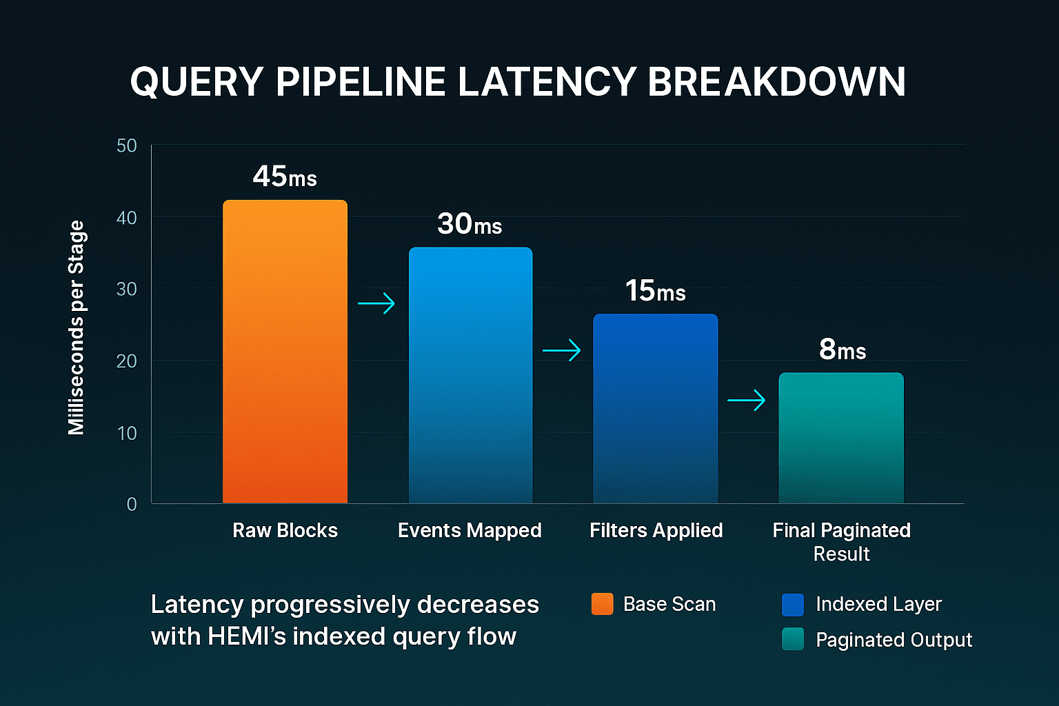 HEMI adotta l'indicizzazione first-developer. Questo significa che pensate alle regole di paginazione e ai filtri come a una barra di ricerca Web3, ad esempio "scambi recenti > portafoglio specifico > ultimi 30 blocchi" e i risultati torneranno immediatamente. Gli schemi prevedibili non richiederanno un continuo lavoro di rielaborazione ai team frontend e sarà più semplice creare dashboard basate sui dati. Questo è lo stesso vantaggio UX che si trova nel mondo tradizionale di SQL/REST, ora implementato nativamente in Web3.