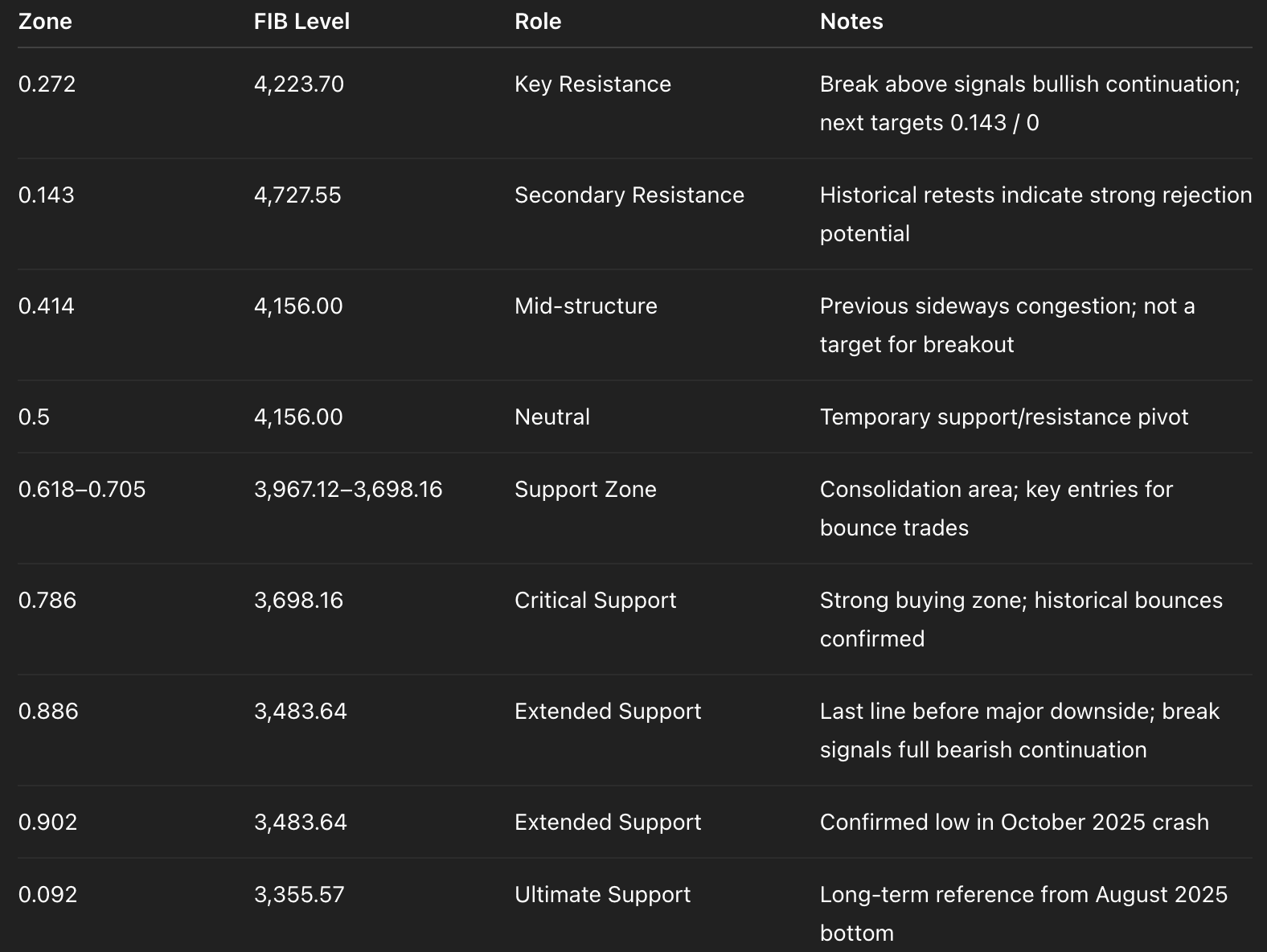 I supporti estesi (0.886–0.902) fungono da zone critiche di crash; i principali crolli possono comportare movimenti rapidi verso 0.092.