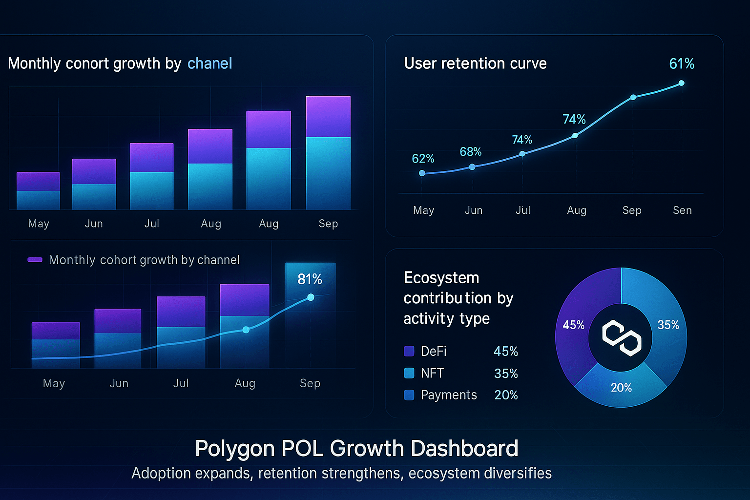 La definizione di buoni dati è quella che non ti fa perdere tempo a pensare, ma ti aiuta a prendere decisioni. Polygon $POL Il modello di analytics della rete di Polygon non conta solo l'adozione, ma la presenta in una forma visiva comprensibile per gli esseri umani. Questo approccio va oltre i semplici grafici e fornisce una vista basata sui cohort, mostrando quali utenti rimangono nell'ecosistema a lungo termine, quali segmenti stanno accelerando e quale è il pattern di retention della rete. Pensalo in questo modo: è evidente a colpo d'occhio quale piano sta utilizzando chi e da dove proviene il vero racconto dell'adozione.