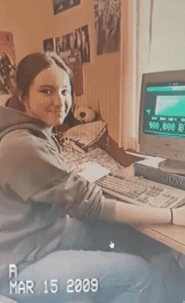 Sì, l'hai vista. Quella immagine che sta girando ovunque... lei davanti a un computer e dietro il testo: “$900,000 BTC”.