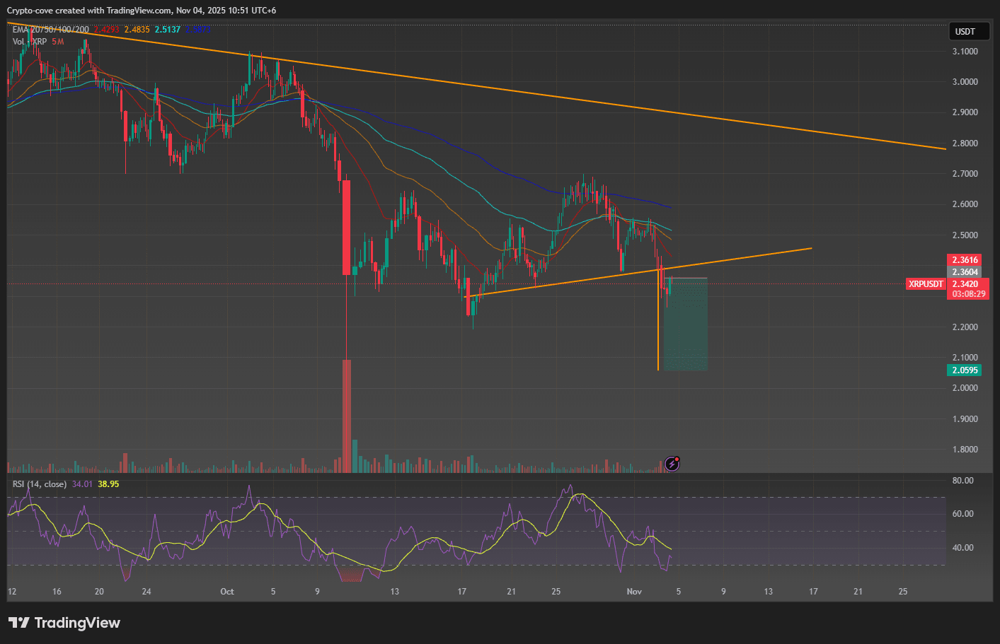 XRP ha già rotto il suo supporto. Ha come obiettivo di scendere nella fascia 2.15. C'è una certa correlazione che mi fa credere che andrà corto.