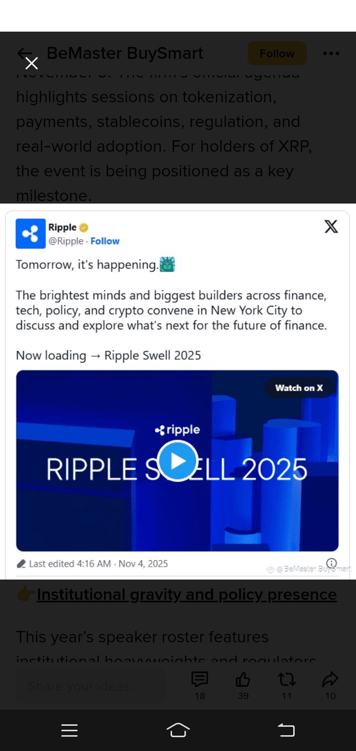 $XRP — L'attesa sta per finire! Domani a New York City, Ripple lancia Swell 2025, il suo evento più grande dell'anno. Il mondo della criptovaluta, della finanza e della politica è tutto concentrato su questo evento — perché potrebbe cambiare le regole del gioco per XRP.