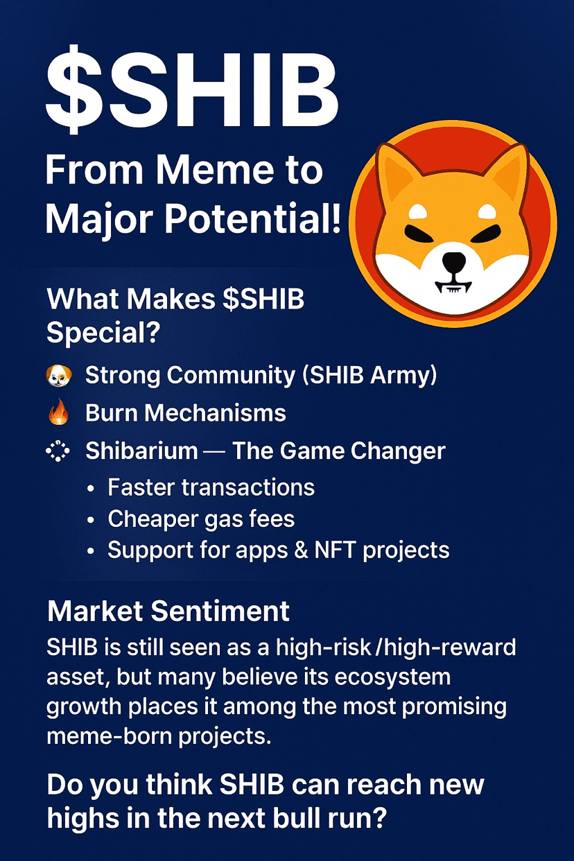 Shiba Inu ($SHIB B) è iniziato come un meme, ma oggi si trova spalla a spalla con alcuni dei più riconosciuti asset crypto. Alimentato da una grande comunità, un ecosistema in espansione e uno sviluppo continuo, SHIB sta dimostrando di essere più di un semplice hype.