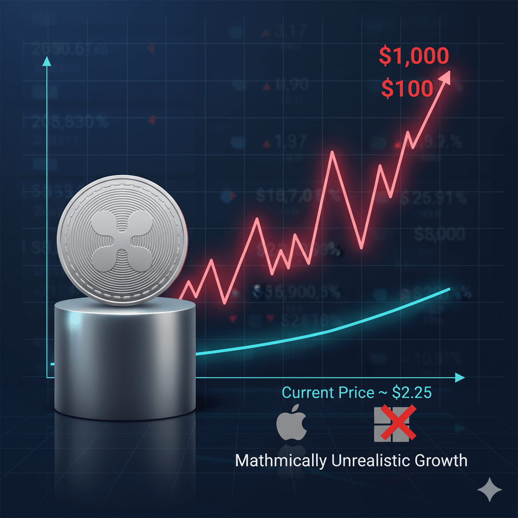 Ad oggi, XRP scambia attorno a $2,25, ben al di sotto degli obiettivi di $100–$1.000 che alcuni influencer promuovono. Con un'offerta circolante di quasi 60 miliardi di XRP, la sua capitalizzazione di mercato si attesta intorno a $135 miliardi.