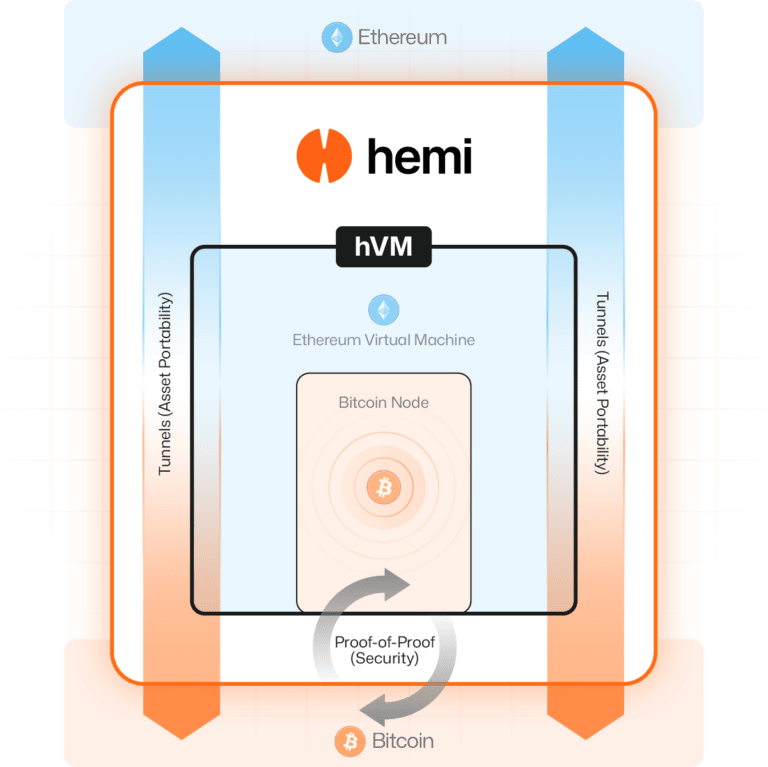 Hemi Virtual Machine (hVM) — Una macchina virtuale Ethereum avvolta attorno a un nodo Bitcoin, che offre il miglior accesso possibile agli stati rispettivi di Bitcoin ed Ethereum.