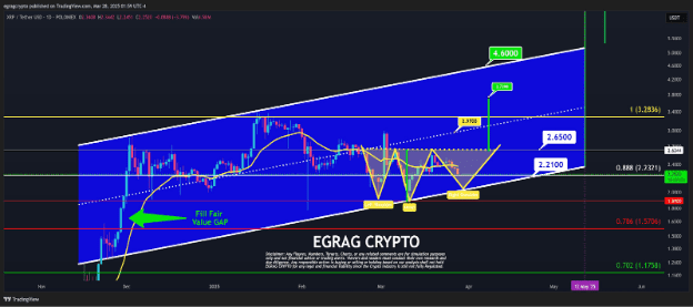 La formazione di un pattern inverso testa e spalle suggerisce un bias rialzista — linea del collo intorno a $2.50, zona obiettivo $2.70-$2.80. (CoinDesk)