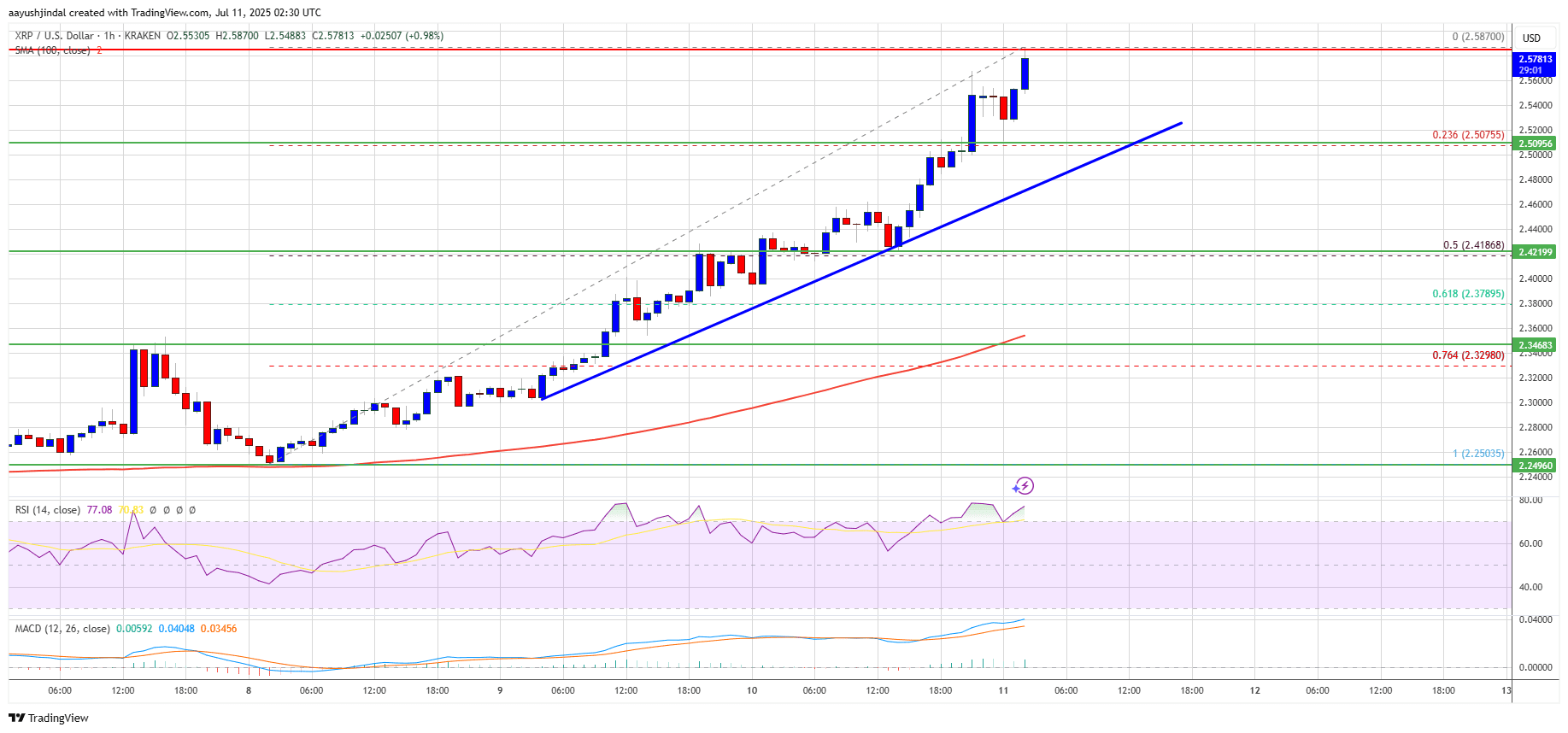 Dato il breakout sopra $2.50, mi inclino moderatamente rialzista nel breve termine — puntando a $2.70-$2.80, a condizione che il supporto a $2.50 regga. Se fallisce, osserva attentamente un ritracciamento verso la zona $2.40-$2.42.